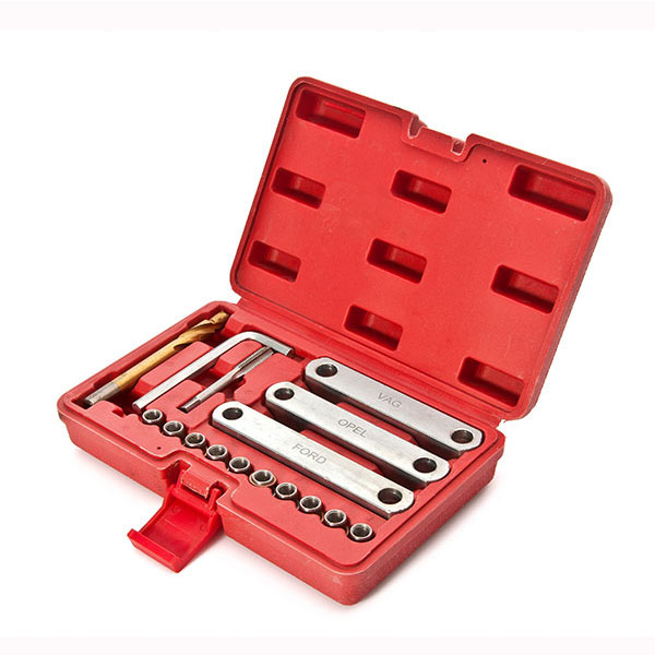 Using this thread set, defective threads can be repaired professionally and quickly.Space guides provided to ensure caliper guides are spaced correctly. Used for Ford, Opel, VW, Audi.