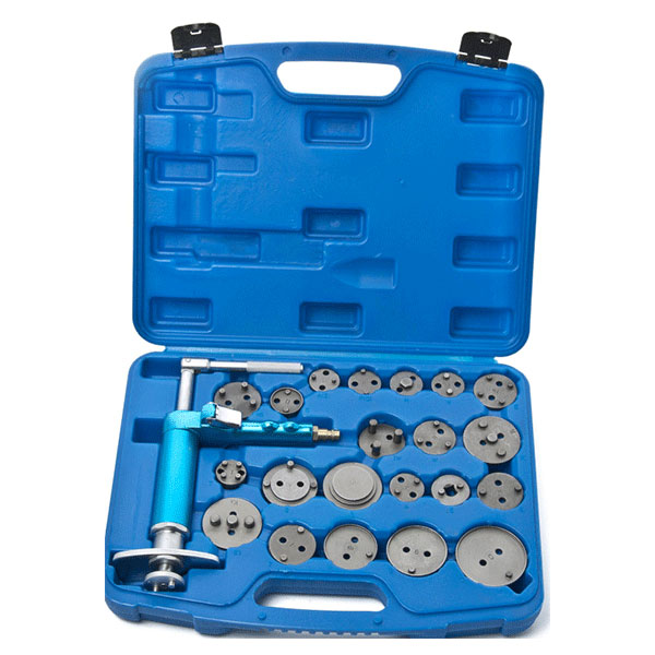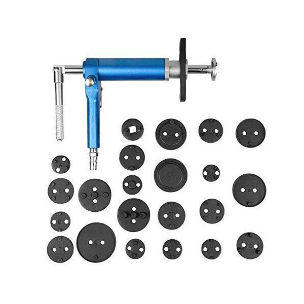 This compressor tool comes with a knurled handle that can move in both clockwise and counterclockwise directions for both left and right pistons.